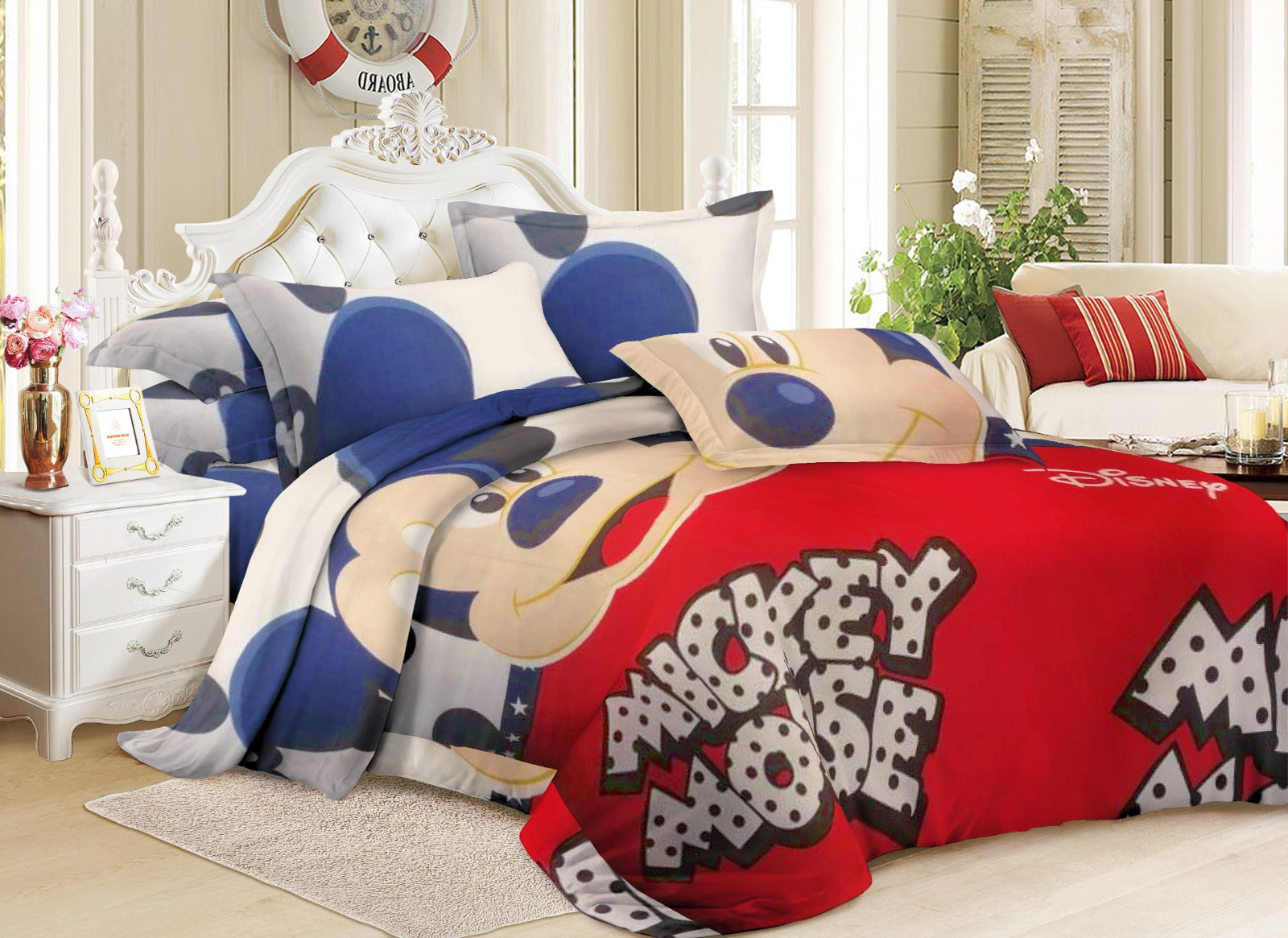 Micky Mouse with 2 Pillow Covers - Bed Sheet